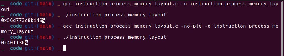 You might also see that the address printed by your program changes with each execution due to ASLR. To disable ASLR for testing purposes, you can use: