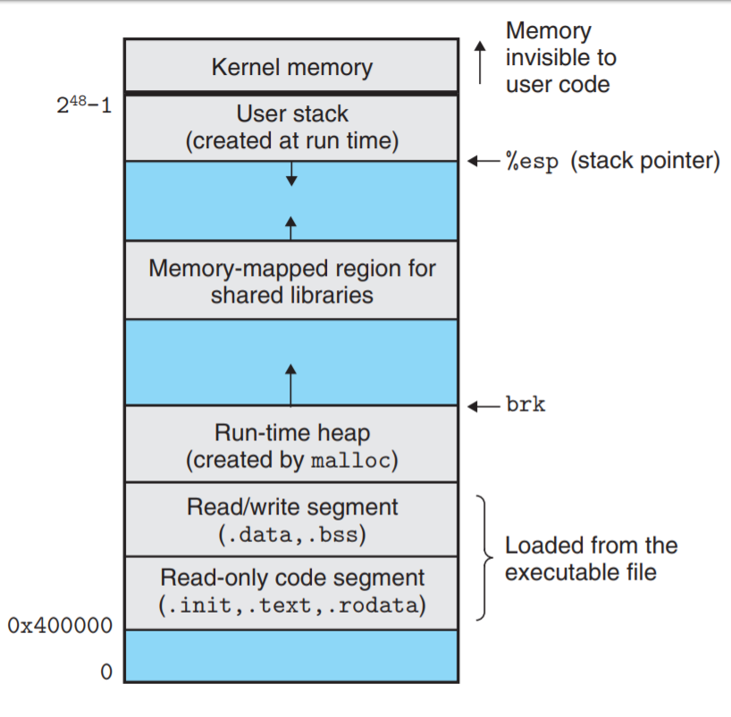 Why are instruction addresses located at the top of the memory user space, contrary to the linux process memory layout?