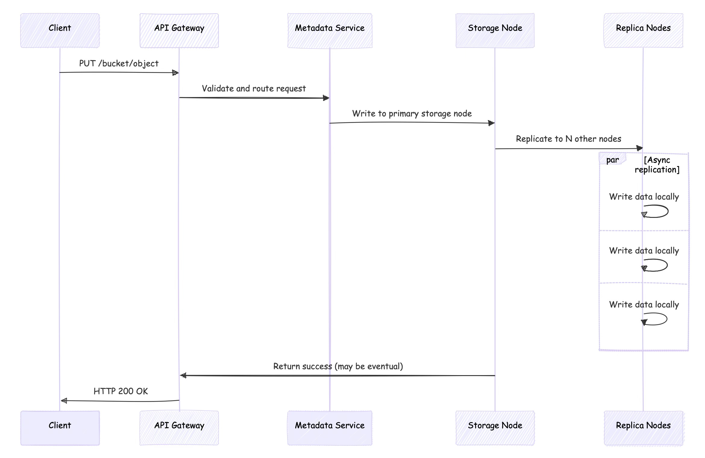 Object storage shines for throughput scaling. Since there's no global file system state to maintain, object stores can scale horizontally by adding more storage nodes. Applications can achieve petabyte-scale throughput by parallelizing requests across many objects and storage nodes.